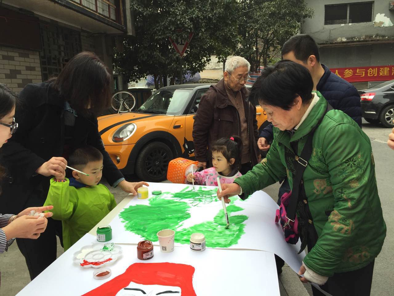 活动分为两个部分:绿色绘制和绿色交换。在绿色绘制中,志愿者们与社区居民一起绘制了三副海报。其中名为“经院牵手葵巷”的海报中,象征浙江财经大学的油桶与代表葵巷社区的居民楼交相辉映,寄托了葵巷居民与我院学子对双方未来进一步合作的美好祝愿。