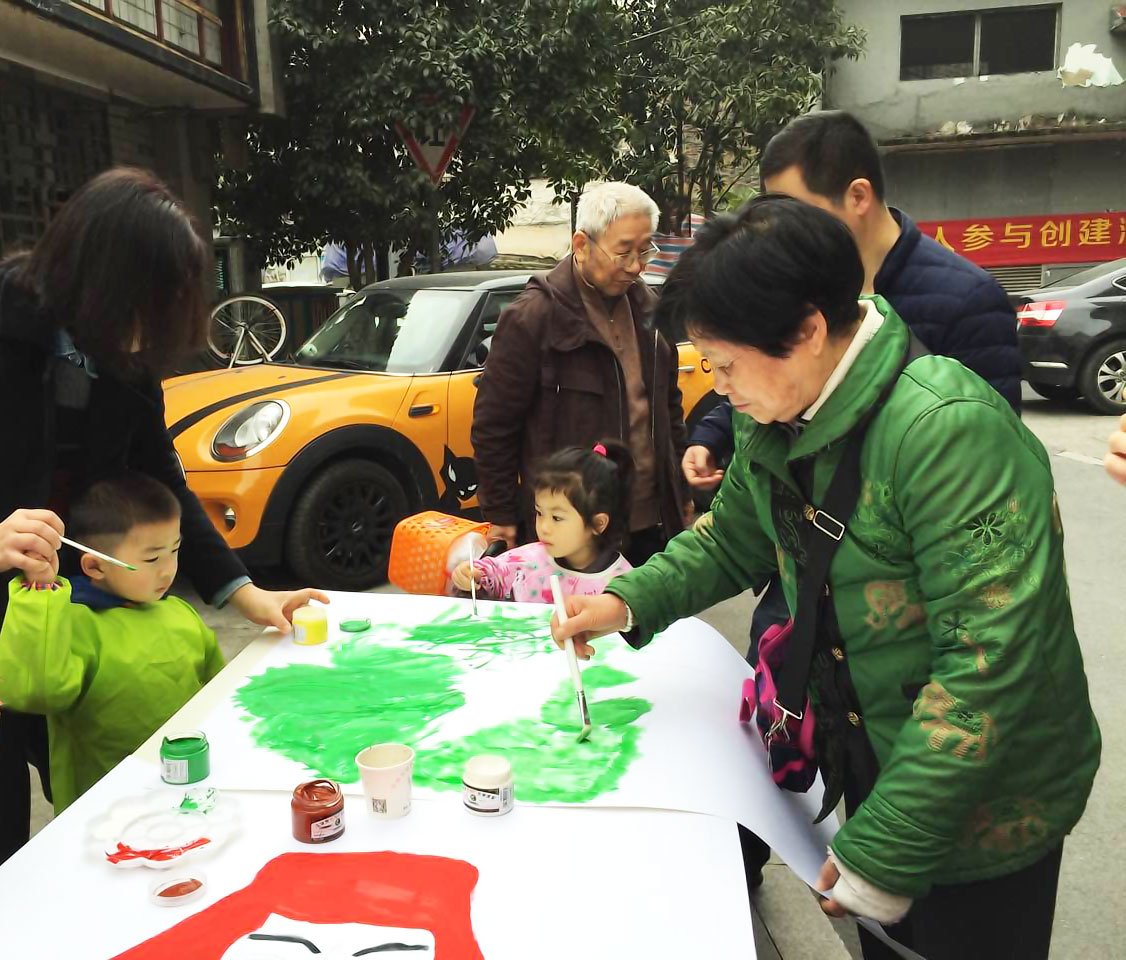 活动分为两个部分:绿色绘制和绿色交换。在绿色绘制中,志愿者们与社区居民一起绘制了三副海报。其中名为“经院牵手葵巷”的海报中,象征浙江财经大学的油桶与代表葵巷社区的居民楼交相辉映,寄托了葵巷居民与我院学子对双方未来进一步合作的美好祝愿。