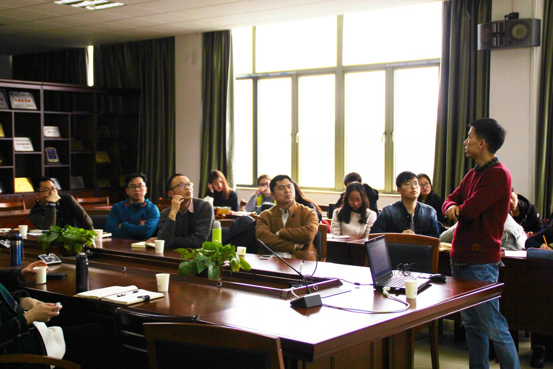 朱林可副教授首先提出了本期思享会探讨的核心问题:国际贸易中购买者是否会受产品质量声誉的影响,并指出了中国制造国际声誉不佳的现状,凸显出其所做研究的价值和意义。随后他结合自身的研究成果和相关理论、实证文献,从质量信息的不对称性、产品质量异质性、海关统计数据、目的国的参考性等各个方面进行了剖析,由此给出了一组计量模型。在座老师对该模型产生了浓厚兴趣,就其稳健性检验数据图表中某相关数据系数稳定下降的现象,展开了激烈讨论,碰撞出了思想新火花。在座同学们亦积极参与,踊跃发表自己的困惑和见解。