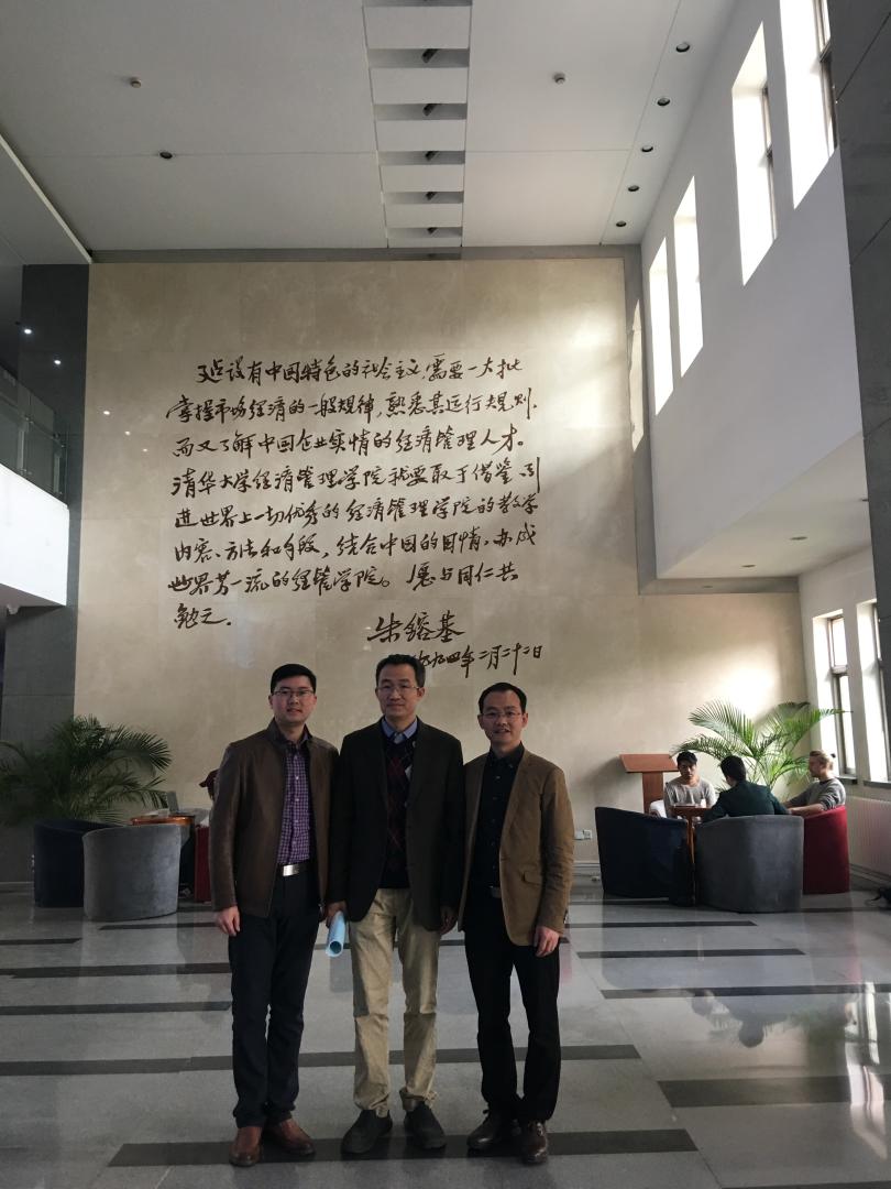 为更好开展经济学省高校“十三五”优势专业建设,学习国内名校经济学专业发展、人才培养、教师队伍建设经验,2017年4月10日,教学副院长柴志贤副教授,经济系主任文雁兵副教授赴清华大学经济管理学院考察学习。