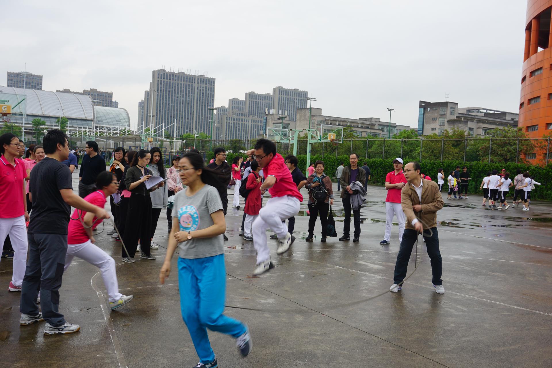 5月4日清早,学校西操场人声鼎沸,浙江财经大学第二十届教工运动会在此举行。