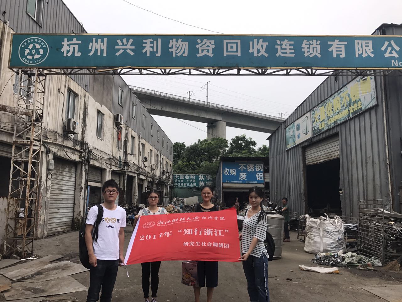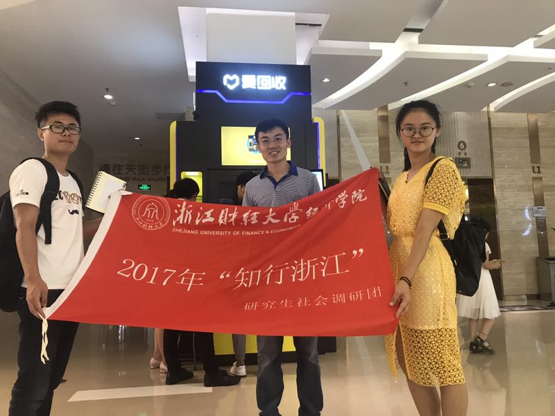 7月初我院“知行浙江”调研团队在王岭老师的带领下,以“互联网+”背景下电子垃圾回收效率测算及社会参与意愿调查研究”为主题,在杭州市内展开为期五天的调研活动。