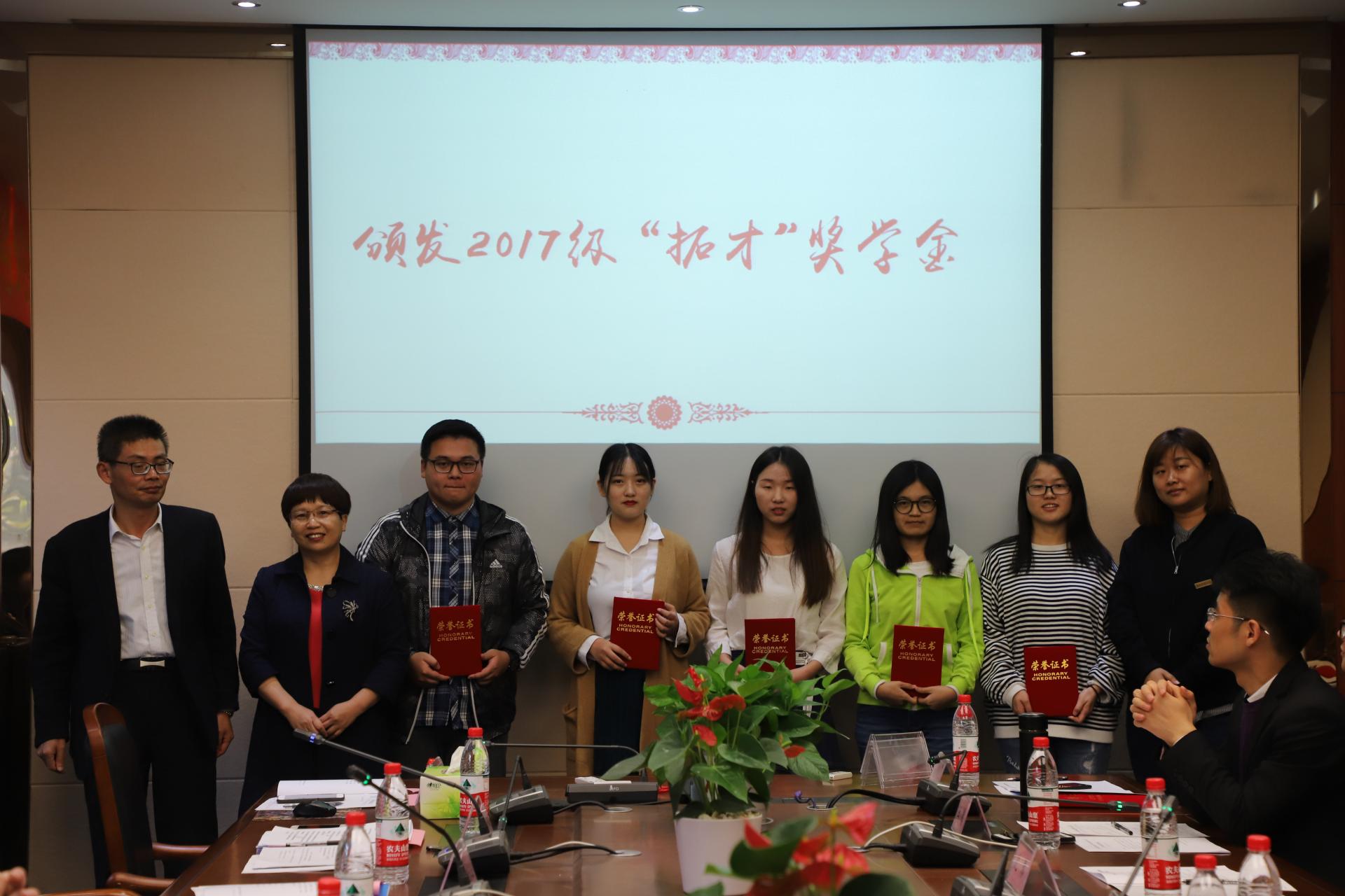 论坛第二阶段,院党委书记沈水法向与会校友汇报学院教育发展基金使用情况。学院教育发展基金从2016年11月5日成立以来,分别用于学院学创中心建设、设立环球360管理系统入口“拓才”奖学金、支持学生创业创新项目以及贫困学生爱心资助等。“拓才”奖学金由03东方国贸2班捐赠,专门用于表彰在学科竞赛中表现优异及具有学科特长的杰出学院经济困难学子。副院长柴志贤宣读了2016—2017学年”拓才“奖学金获得者的表彰文件。院长胡亦琴、党委书记沈水法及03东方国贸2班班长沈琴共同为“拓才”奖学金获得者颁发荣誉证书。