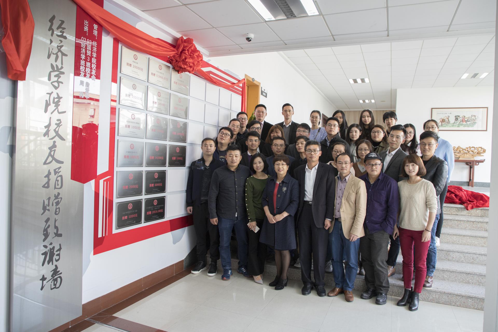 学院校友捐赠致谢墙由03经济学班周伟校友和03国贸3班詹爱华校友共同出资建成。