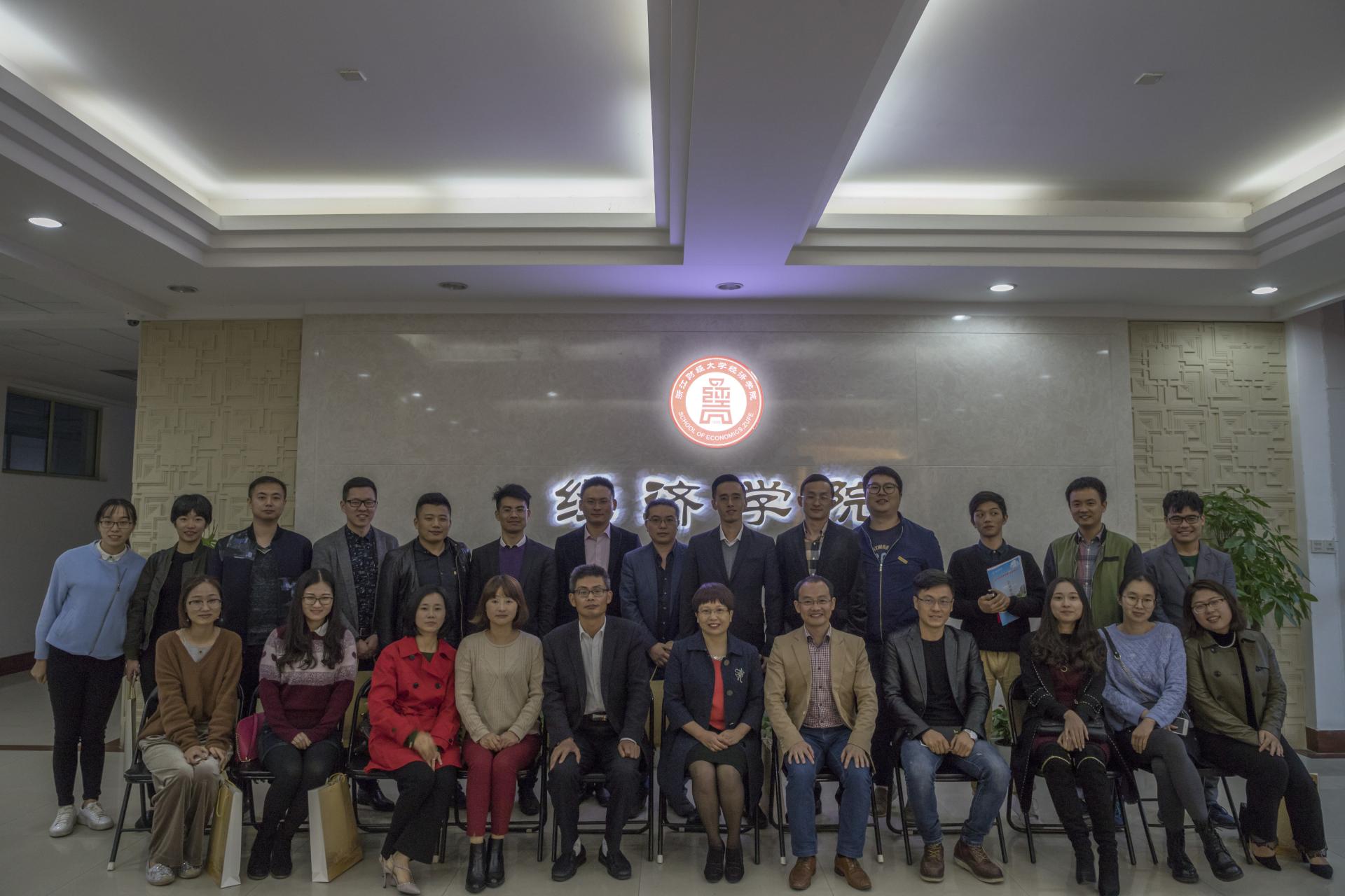 国际经济与贸易系教师代表纪云东介绍了国贸系的人才培养相关情况。他讲到学院开设国贸英华班这一举措正是为了构建多元化复合型人才培养体系,推行通识教育所作出的探索尝试,并希望通过校企合作,举办企业家进课堂等一系列活动,培养在校学子的实践能力和综合素养。