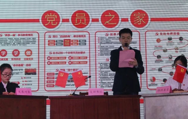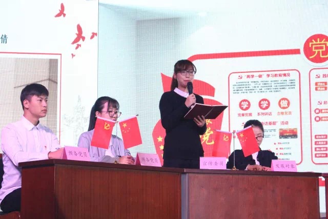 活动由发展党员工作动漫片《入党流程》引入,在主持人深情并茂的开场白后,由我院本科生第二党支部书记崔泰铭老师带领发展对象和与会党员上台召开学生党员发展大会进行案例式教学。首先入党申请人何小荣同志将自己的基本情况、入党动机、政治觉悟等情况向党组织进行了汇报,随后,入党介绍人、组织委员、与会党员对何小荣同志的情况进行充分汇报交流讨论,并发表自己的意见。在公平公开公正的原则下与会正式党员以不记名投票方式决定接收何小荣同志为中共预备党员。