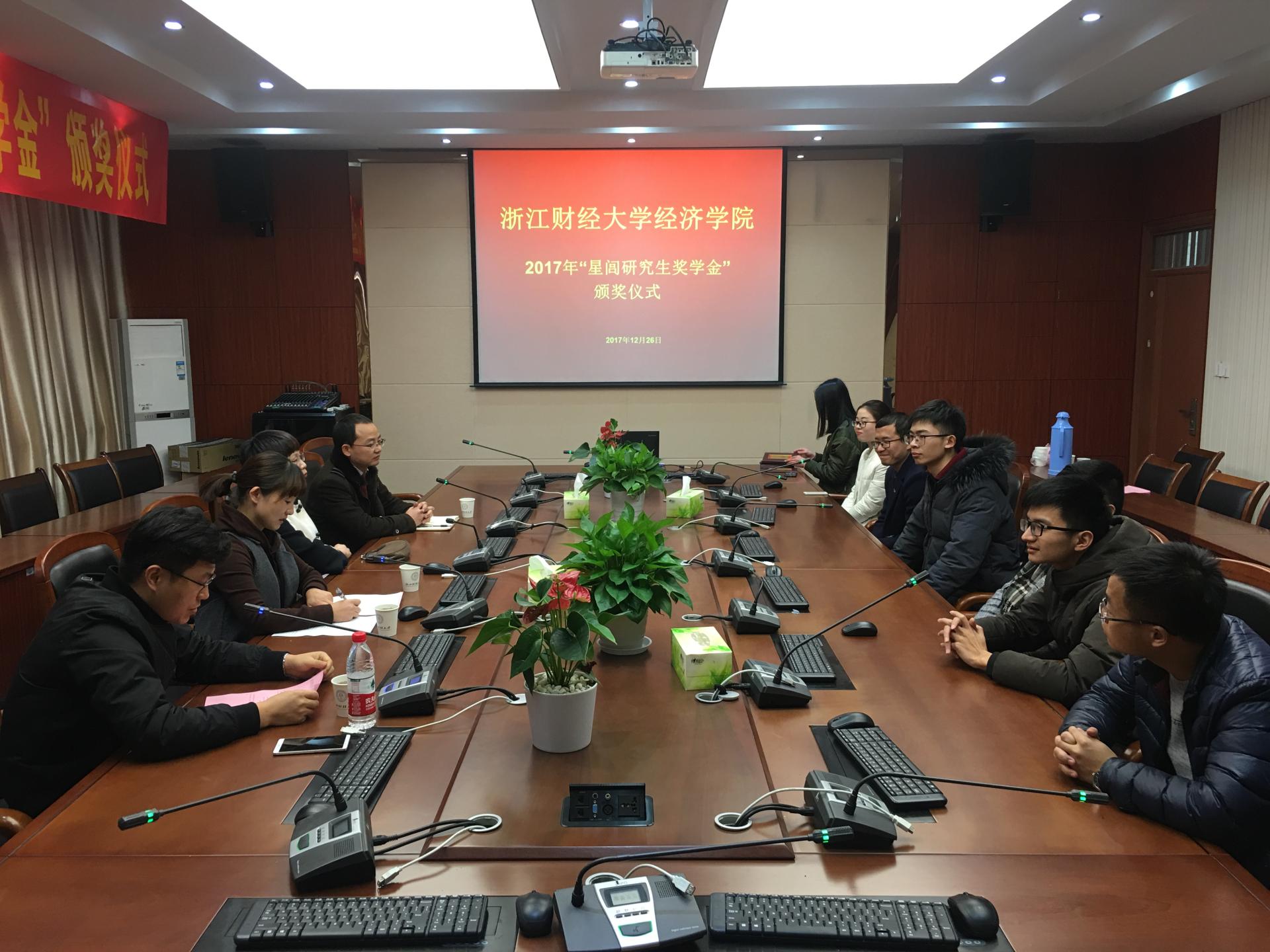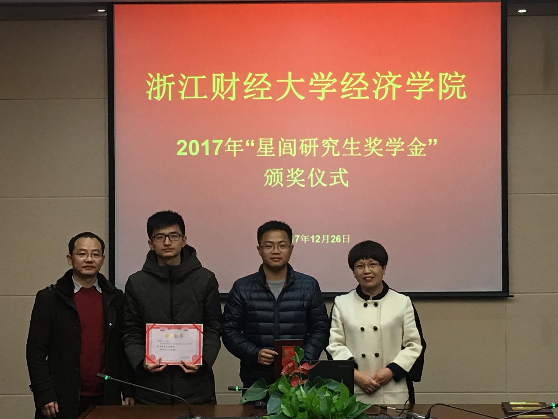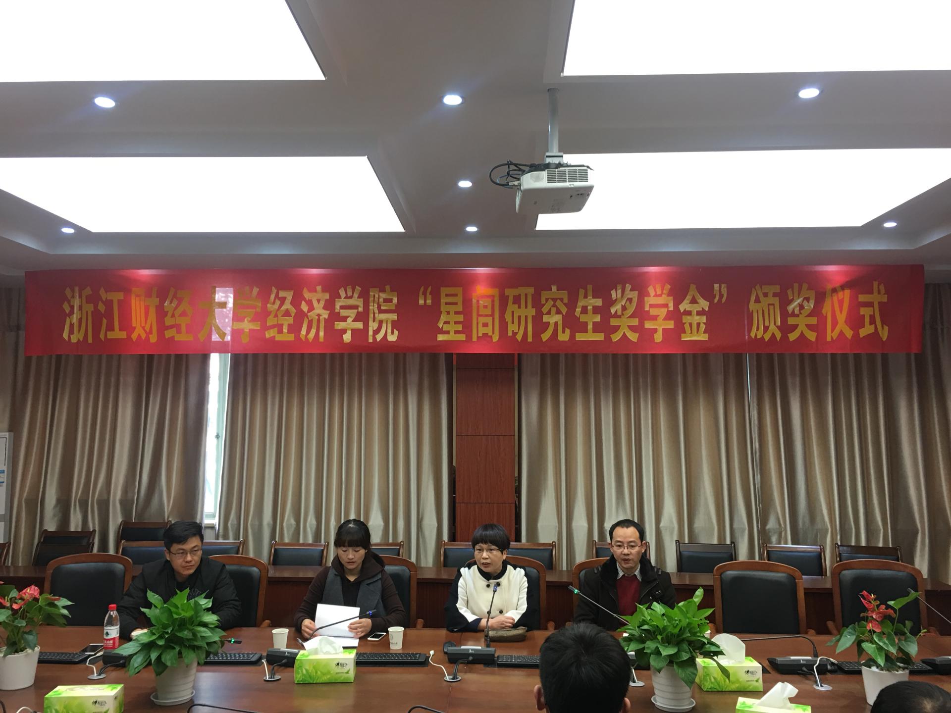 12月26日,我院第五届“星闾研究生奖学金”颁奖仪式在210会议室举行,胡亦琴院长、柴志贤副院长、王正新副院长及研究生辅导员曹仲晔出席,学院党委副书记杨小恩主持会议。