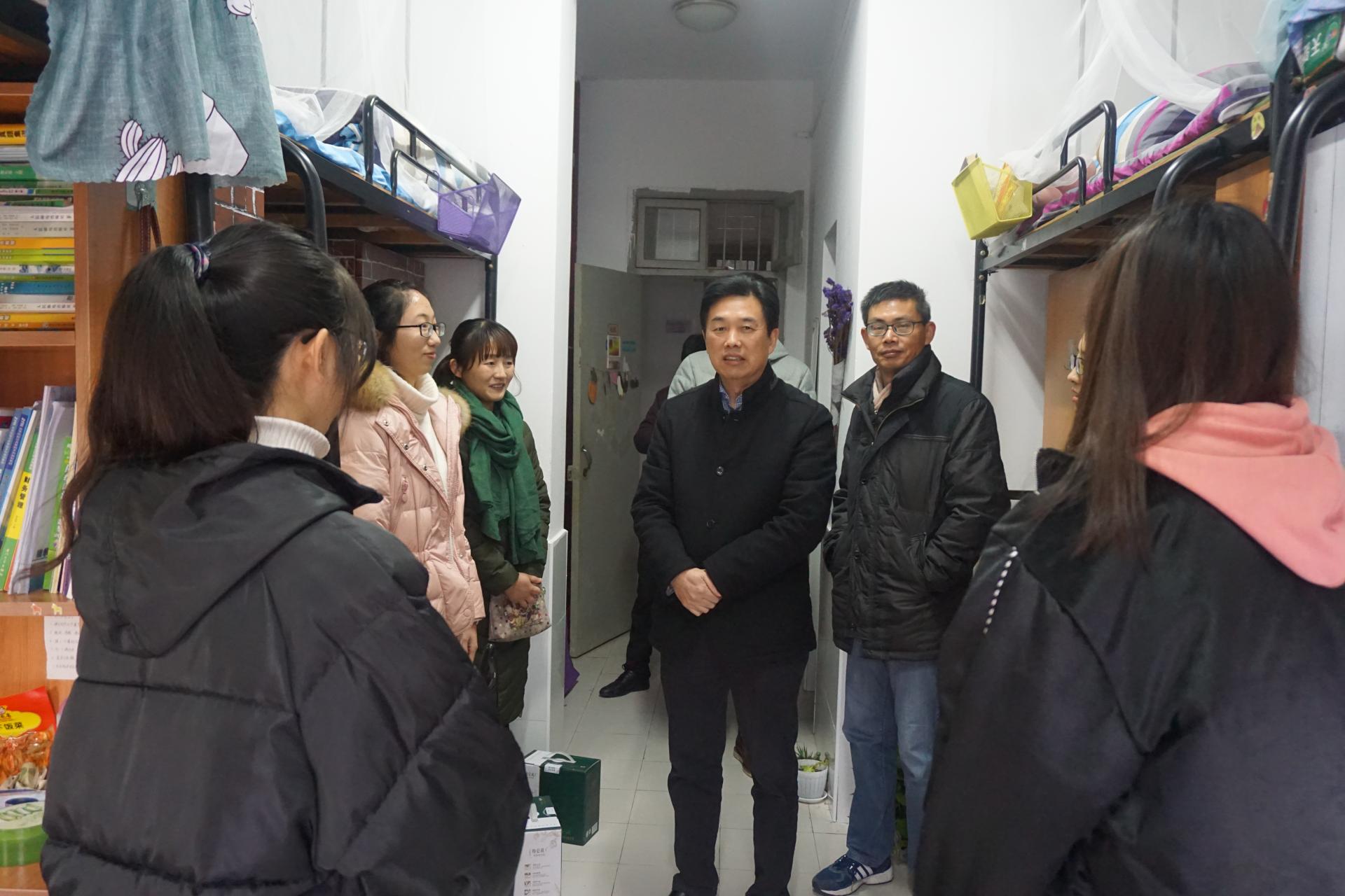 1月5日下午,校纪委书记陈金方在学院党委书记沈书法、副书记杨小恩、辅导员李伶俐、曹仲晔的陪同下走访了学生生活园区5幢416寝室。