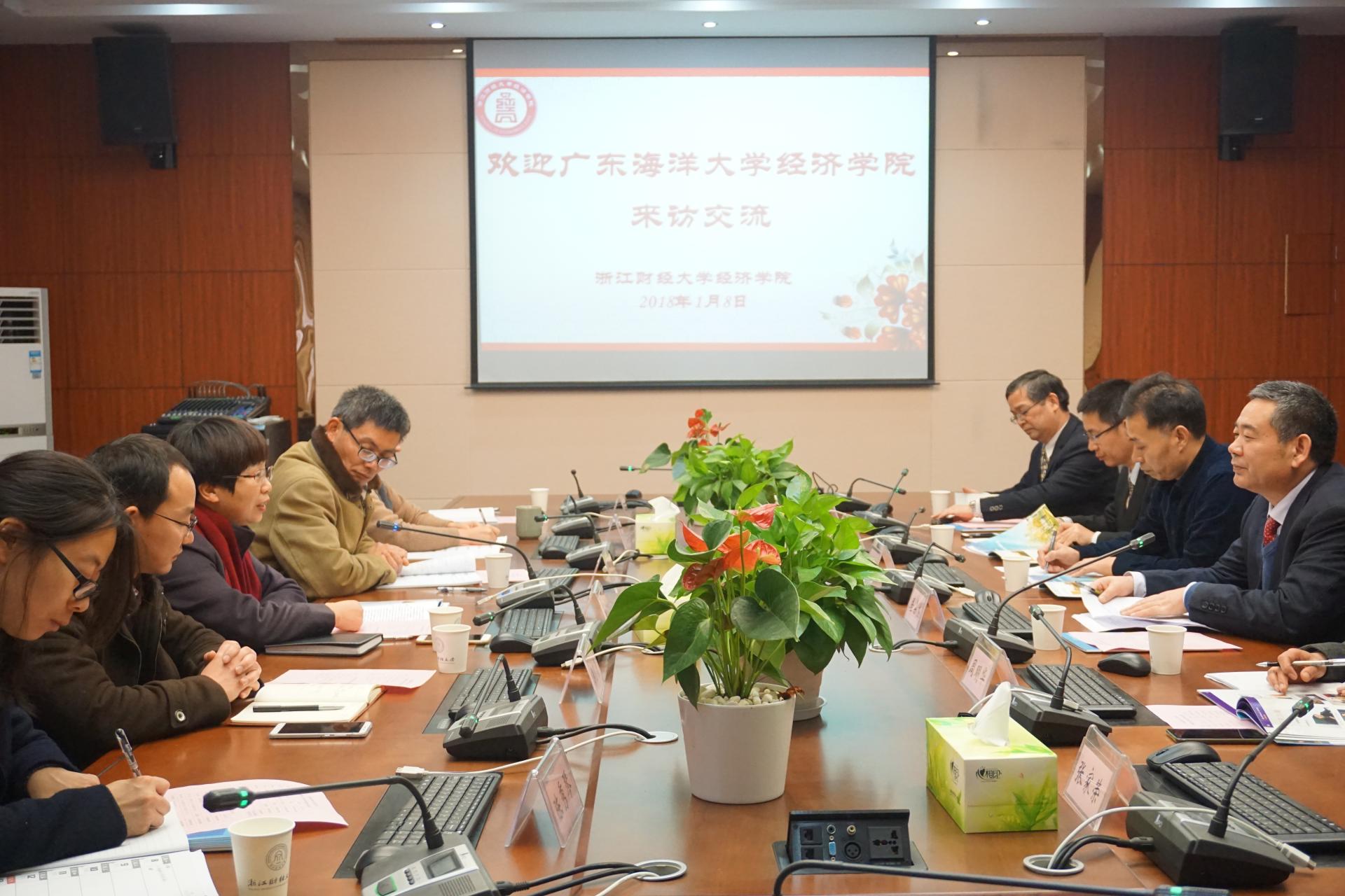 1月8日,广东海洋大学环球360管理系统入口居占杰副院长(主持行政工作)、经济系主任陈本良、国贸系主任尹年长等一行来我院考察调研。胡亦琴院长、沈水法书记、柴志贤副院长、杨小恩副书记热情接待了来访客人,在学院楼210会议室与来宾进行了交流座谈。
