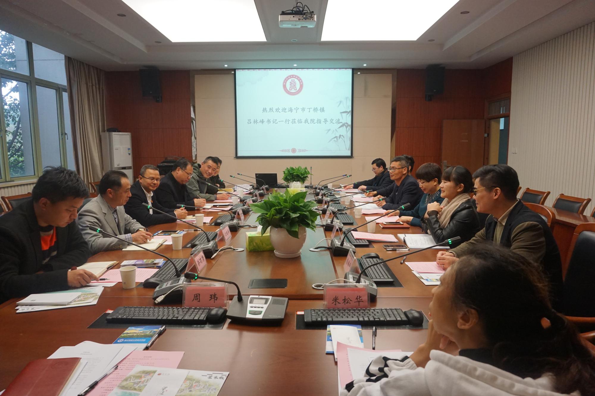 吕林峰书记高度评价了我院的办学成就,从交通区位优势、经济发展与产业布局、美丽乡村建设等维度介绍了海宁市丁桥镇的基本情况,希望能依托我院丰富的学科与人才资源,为丁桥镇产业布局优化和美丽乡村建设的梁家墩模式提升提供理论、智力和人才的支持。