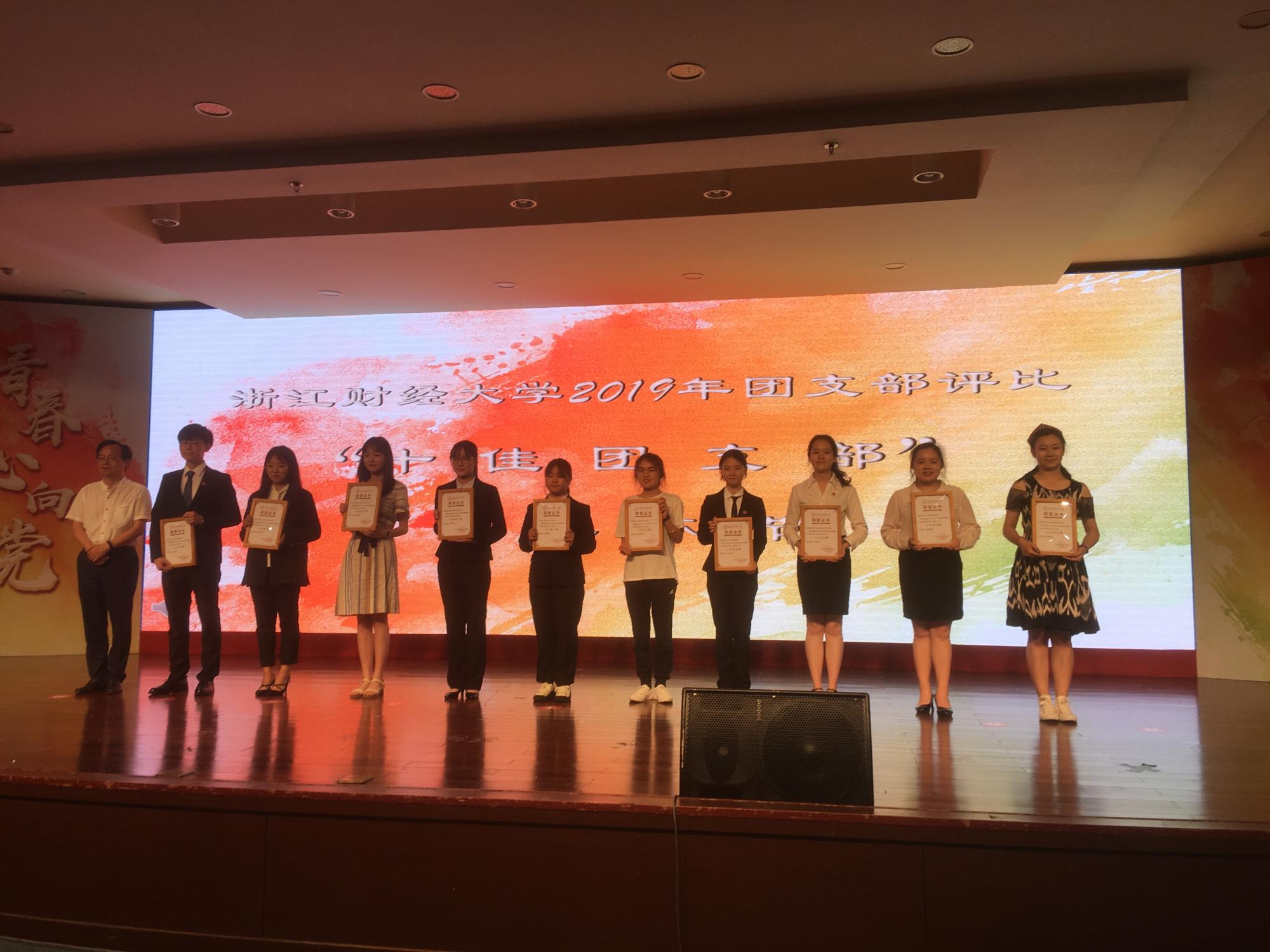 我院17国贸1班团支部在过去的一个学年内举办了多种多样的团学活动,支部能紧跟学院团委的总体部署,始终把“做党的后备军和接班人”作为支部宗旨,取得的成果受到现场评委的一致好评,荣获“十佳团支部”荣誉称号。