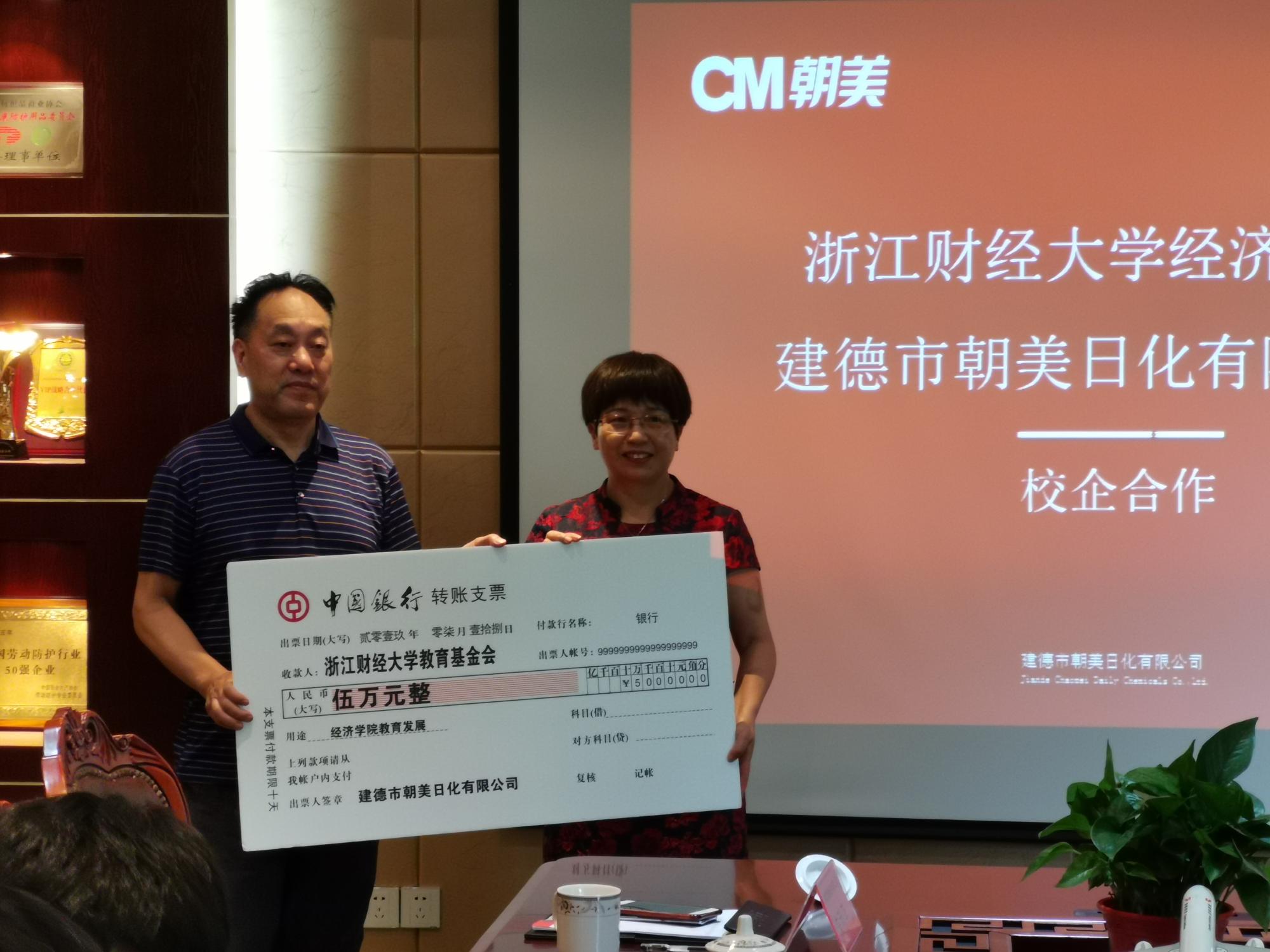 签约结束后,建德朝美日化公司为环球360管理系统入口教育发展基金捐赠伍万元整。胡亦琴院长代表学院向企业表示感谢,她表示,学院将按照捐赠者的意愿和基金的管理办法用于学院的教育事业发展,使基金发挥更大的作用。