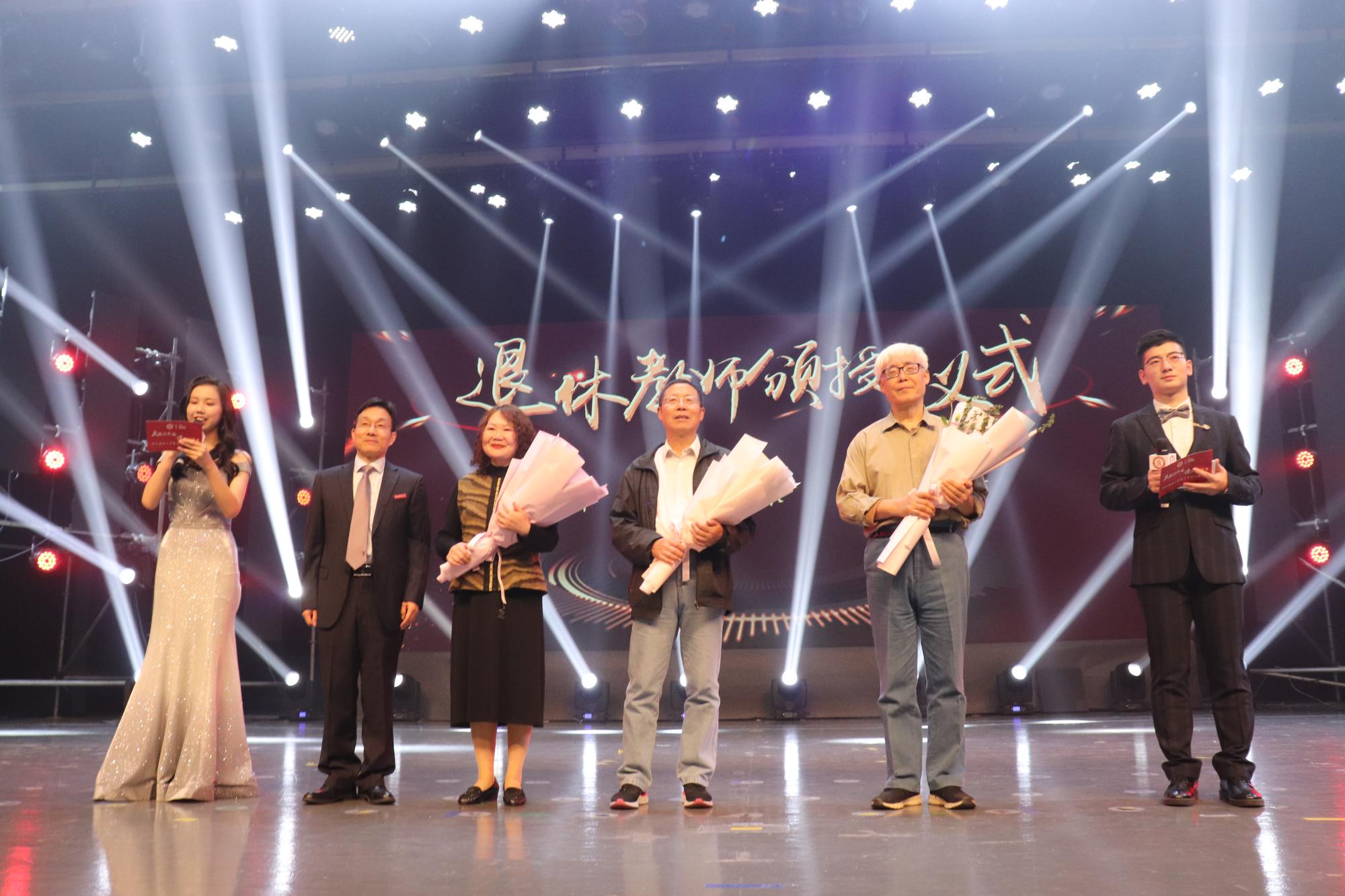 嘉兴学院院长卢新波为退休教师献花