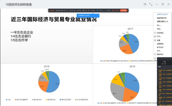其次,吴宏老师还阐述了国贸专业的培养目标、国贸专业就业情况,分析学生就业去向的统计数据,并介绍了国贸专业的特点——“一基双元”的发展模式,即以传统国际贸易为基础、以跨境电子商务与民营企业跨国投资为两个特色方向。