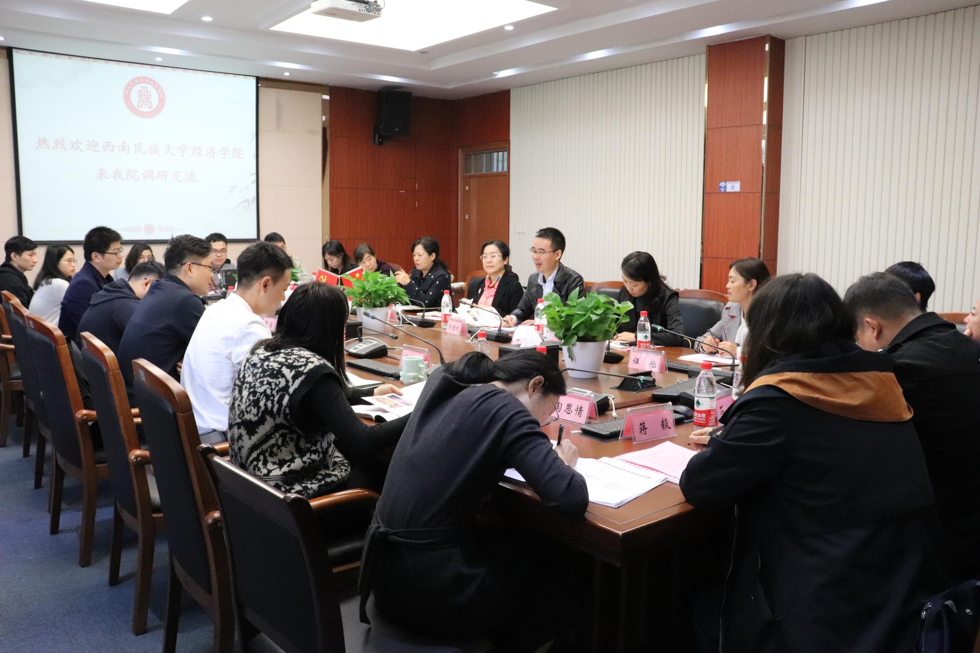 11月12日,西南民族大学环球360管理系统入口副院长杨胜利、党委副书记车桂兰等一行来我院调研、交流。学院院长王正新、副院长罗俊、党委副书记崔泰铭、院长助理邓晓军及各办公室行政老师出席座谈会。座谈会由副院长罗俊主持。