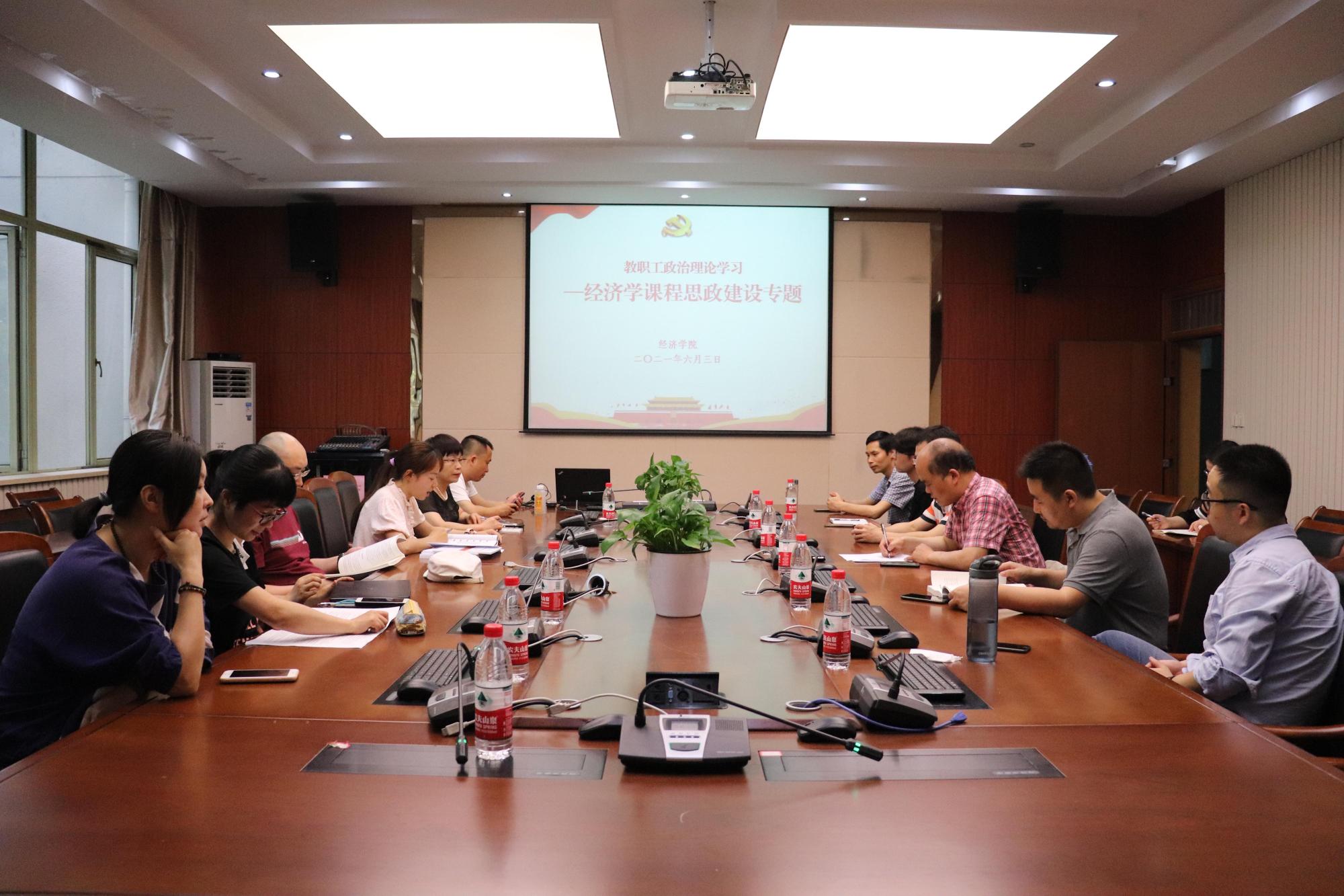 近日,学院在6-210会议室召开教职工政治理论学习暨经济学课程思政建设研讨会,微观经济学、宏观经济学、经济学原理等课程任课教师参会,会议由学院党委书记胡亦琴主持。