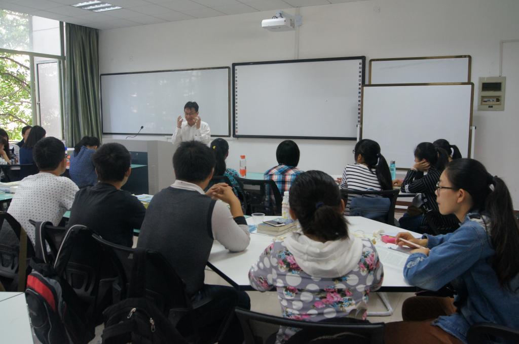 10 月21日上午,我院15级“现代经济学实验班”系列seminar在6号楼106教室首次开讲,副校长卢新波教授以“我理解的经济学”为题,与实验班同学进行了深入的交流与探讨。柴志贤副院长主持,胡亦琴院长参加交流。