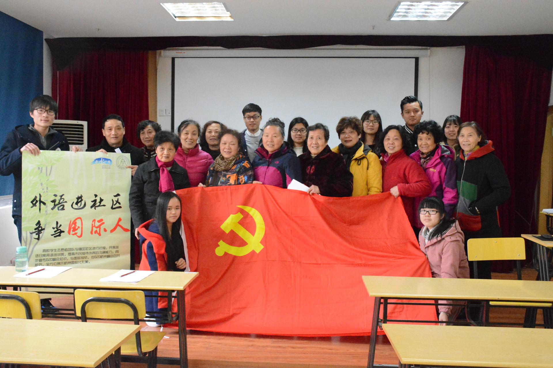 为迎接G20峰会召开,3月24日下午,我院“外语进社区 争当国际人”志愿活动正式启动。由我院第三党支部和青年志愿者协会组成的志愿者们来到上城区大通桥社区进行日常英语教学。