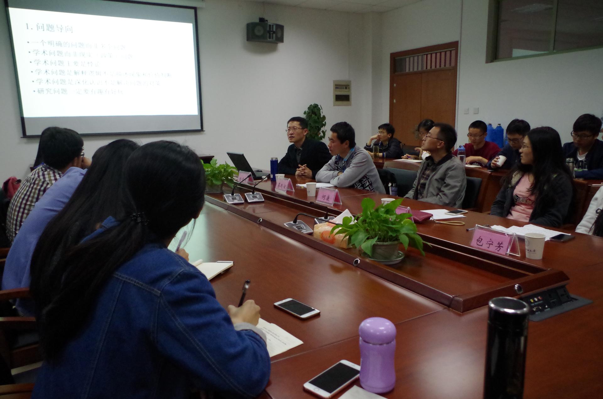 随后,2014级研究生代表围绕“如何查找文献资料”,“怎样加强专业知识储备”、“论开题答辩注意事项”等主题分享了他们在开题准备过程中得到的经验,同时也结合自己的亲身经历描述了实际情况。会后,同学们就具体的问题和老师进行了咨询互动,现场气氛热烈。