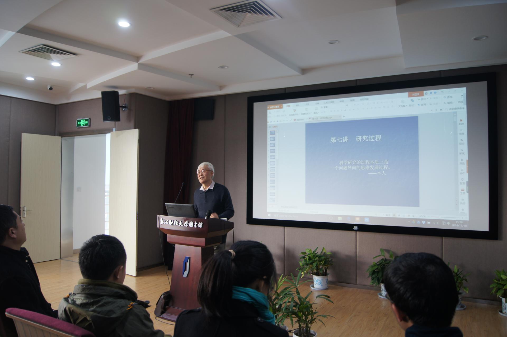 11月10日下午,浙江财经大学思享会•第五期学术微沙龙在图书馆六楼共享空间多功能报告厅举行。本期沙龙主题为论科学研究过程,由周冰教授主讲,我院相关专业师生共30余人共同聆听和参与了本期沙龙。