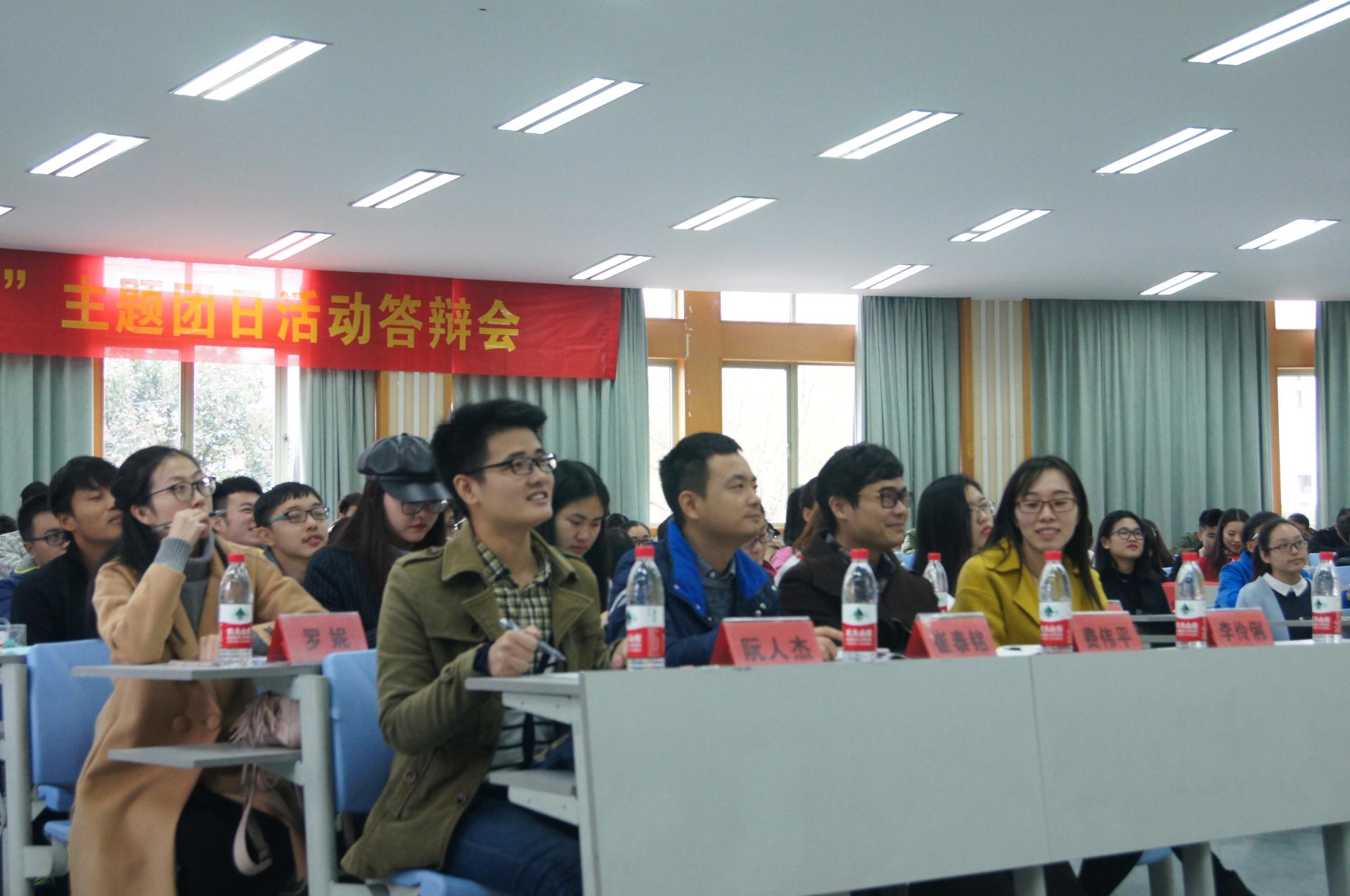 答辩会主要由各班团支书以ppt形式进行班级团日活动汇报。各班分别分享了自己在团日活动中组织阅读的红色书刊,其中有广为人知的《钢铁是怎样炼成的》、《红岩》,还有红色故事《金色的鱼钩》等。还有一些分享了本班的红色誓言,有些简短有力,有些内涵丰富,有些含意深远,每一句都包含了班级同学的心血,也让同学之间的感情、班级的凝聚力在无形中得到了提升。