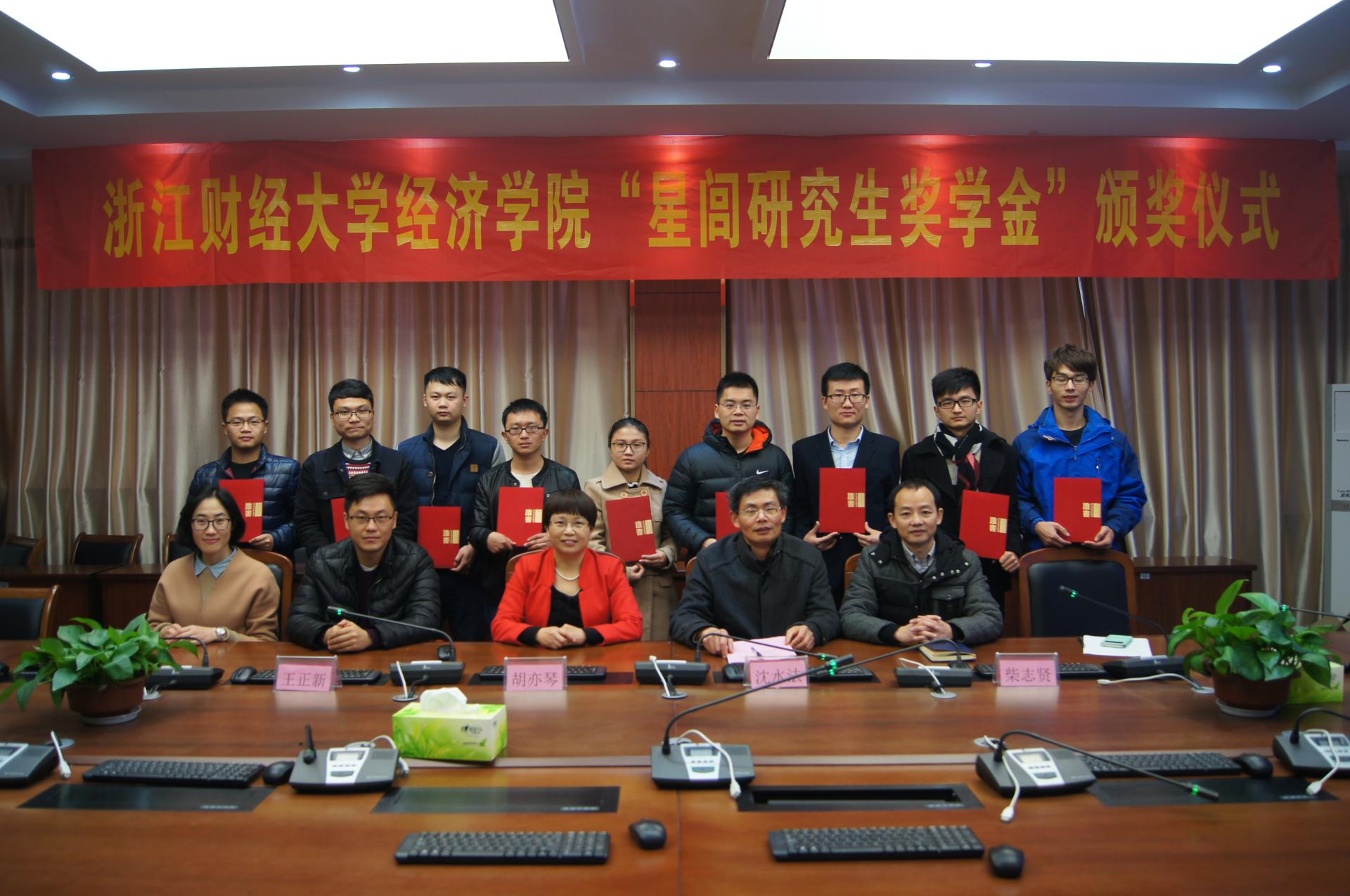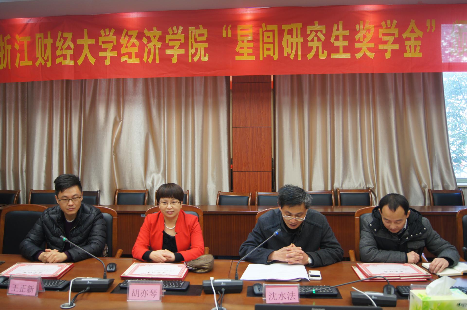 12月7日,我院第五届“星闾研究生奖学金”颁奖仪式在210会议室举行,胡亦琴院长、柴志贤副院长、王正新副院长及研究生辅导员陶恩情出席,学院党委书记沈水法老师主持会议。