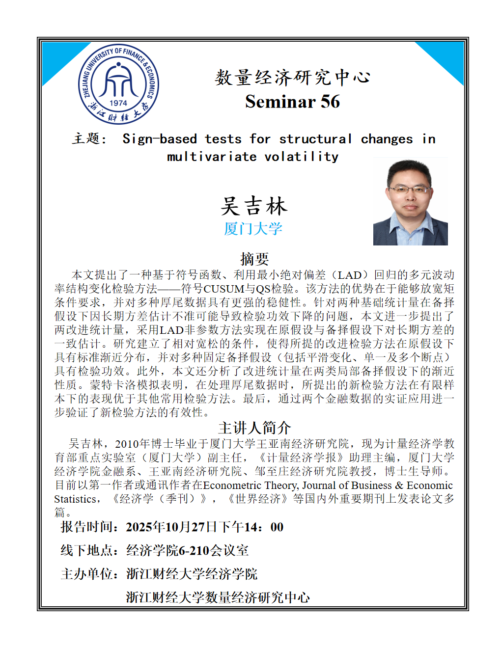 学术讲座——浙财数量经济研究中心Seminar 56