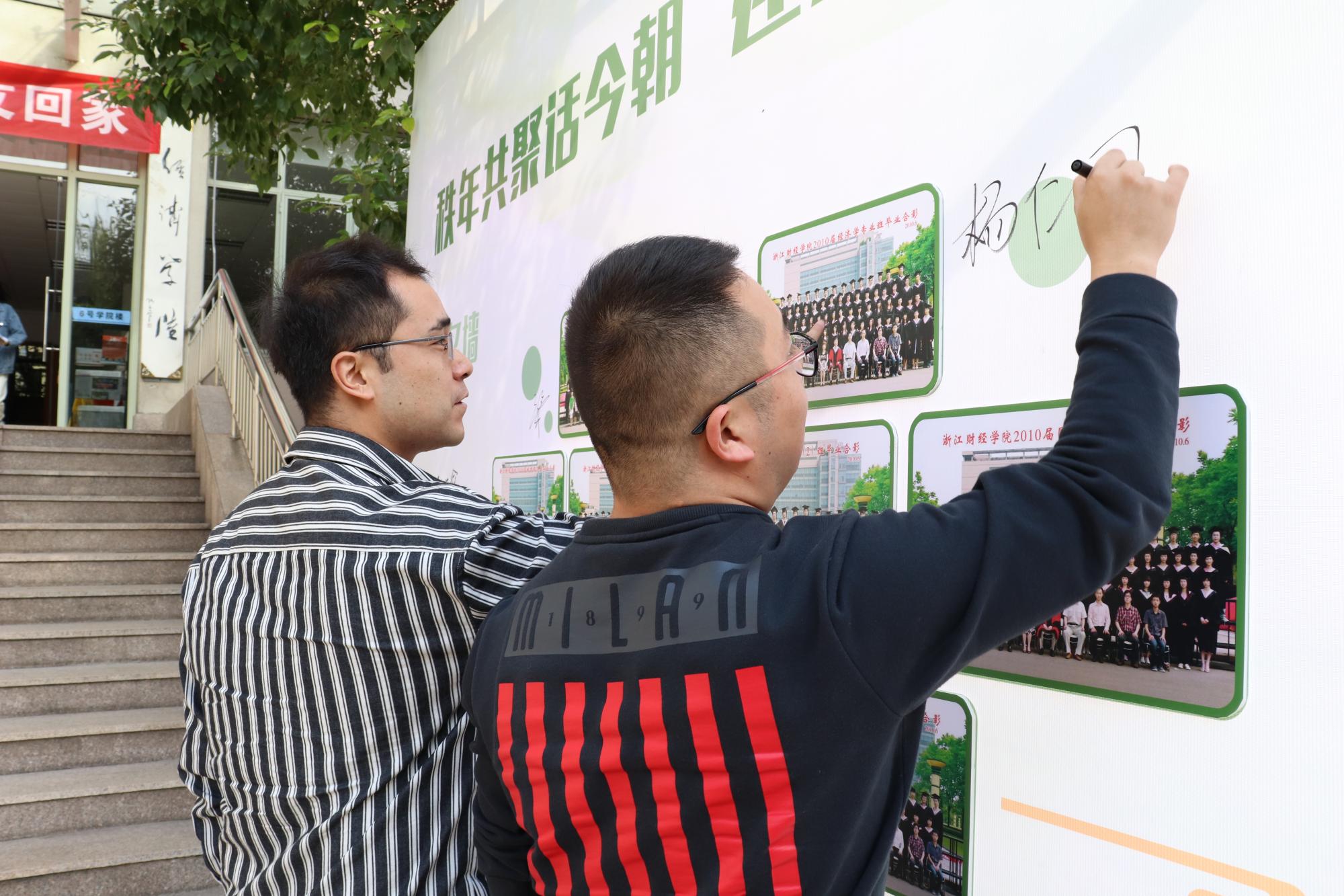 上午10点开始,学院2010届毕业10周年班级同学陆续回到学院楼,校友们齐聚一堂,共同分享着久别重逢的喜悦。他们回忆起了曾经在浙财的校园缤纷生活,同时也谈论着现在的职业生涯。