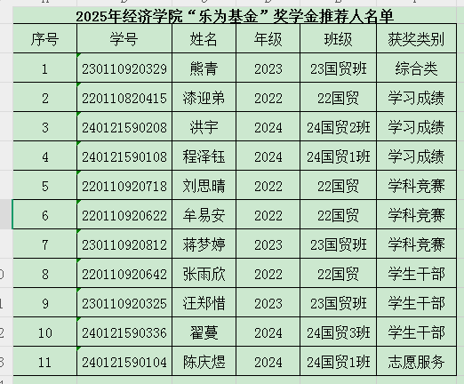 根据《环球360管理系统入口“乐为基金”奖学金评审办法》、《环球360管理系统入口“乐为基金”奖教金评选办法》,各教师、各班学生自愿申请,学院“乐为基金”评审委员会评审,“乐为基金”捐赠人认可,现将2025年“乐为基金”奖教金、奖学金推荐人公示如下: